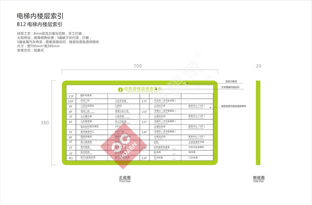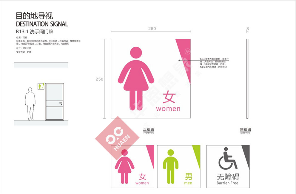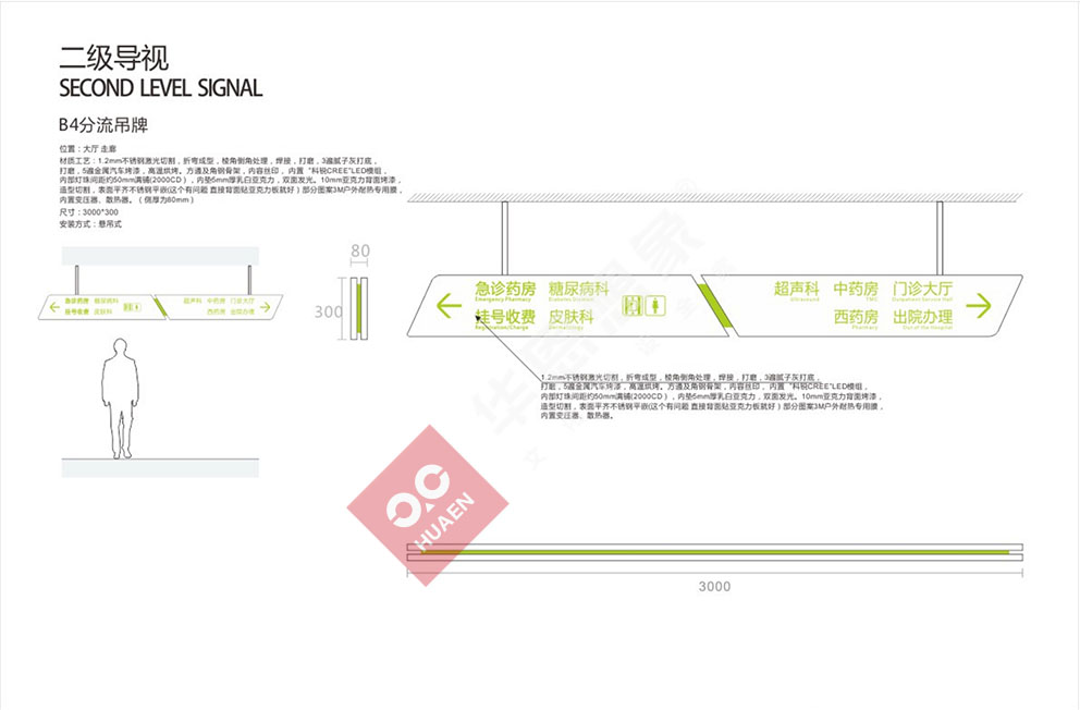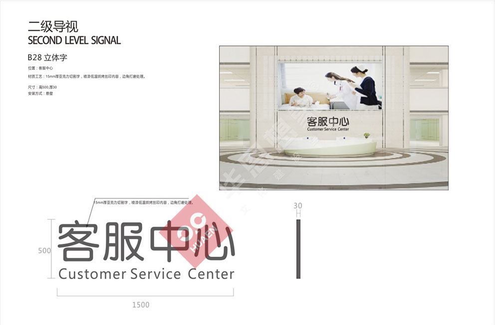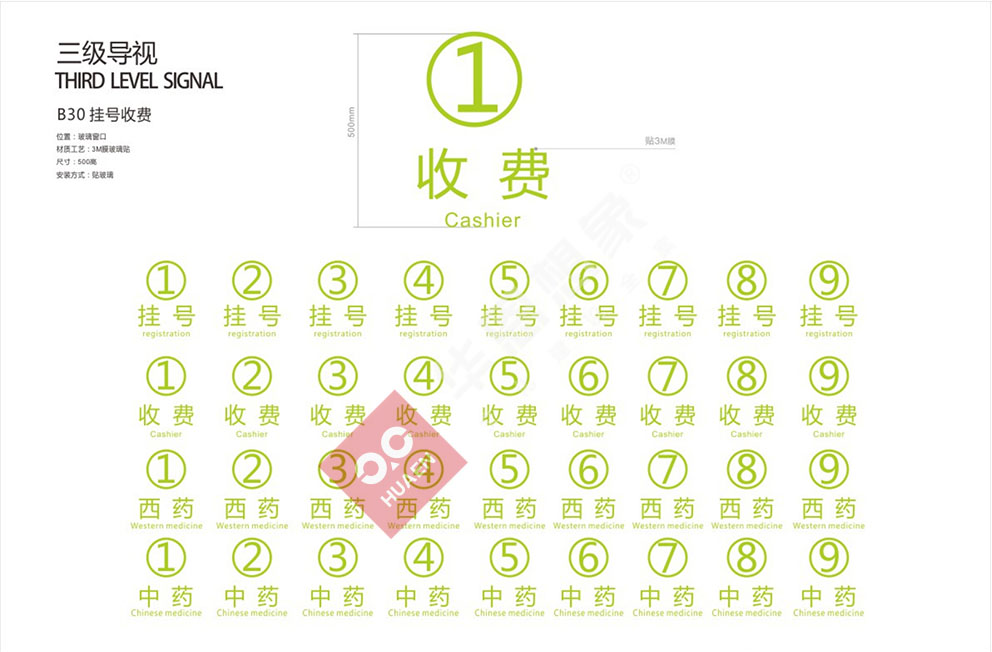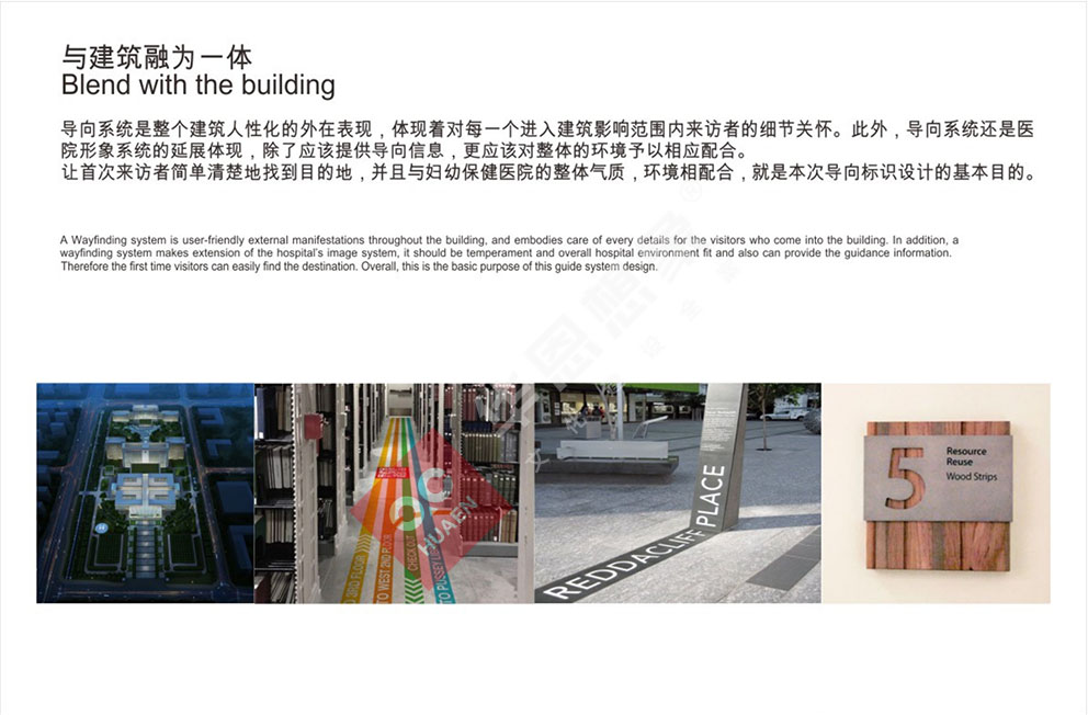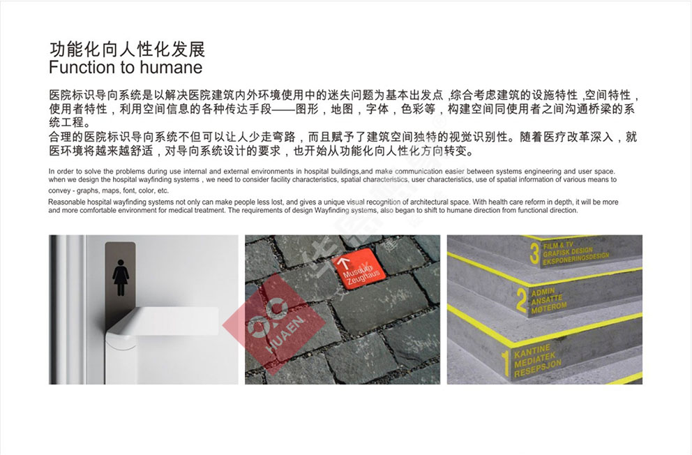 設(shè)計理念:醫(yī)院標(biāo)識導(dǎo)向系統(tǒng)是以解決醫(yī)院建筑內(nèi)外環(huán)境使用中的迷失問題為基本出發(fā)點綜合考慮建筑的設(shè)施特性,空間特性使用者特性,利用空間信息的各種傳達(dá)手段--圖形 ,地圖,字體,色彩,構(gòu)建空間同使用者之間溝通橋梁的系統(tǒng)工程。合理的醫(yī)院標(biāo)識導(dǎo)向系統(tǒng)不但可以讓人少走彎路,而且賦予了建筑空間獨特的視覺識別性。隨著醫(yī)療改革深入,就醫(yī)環(huán)境將越來越舒適,對導(dǎo)向系統(tǒng)設(shè)計的要求,也開始從功能化向人性化方向轉(zhuǎn)變。